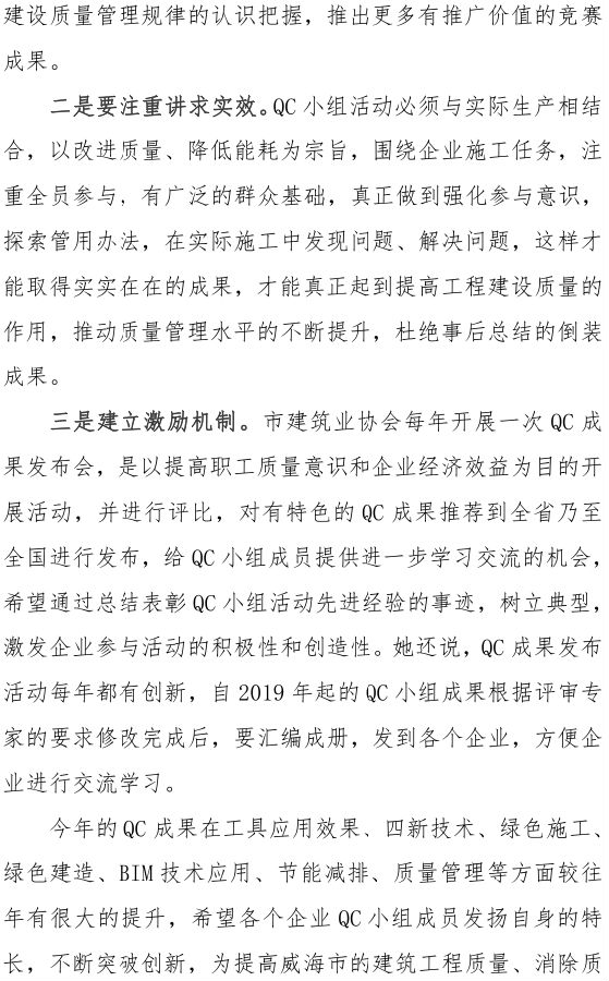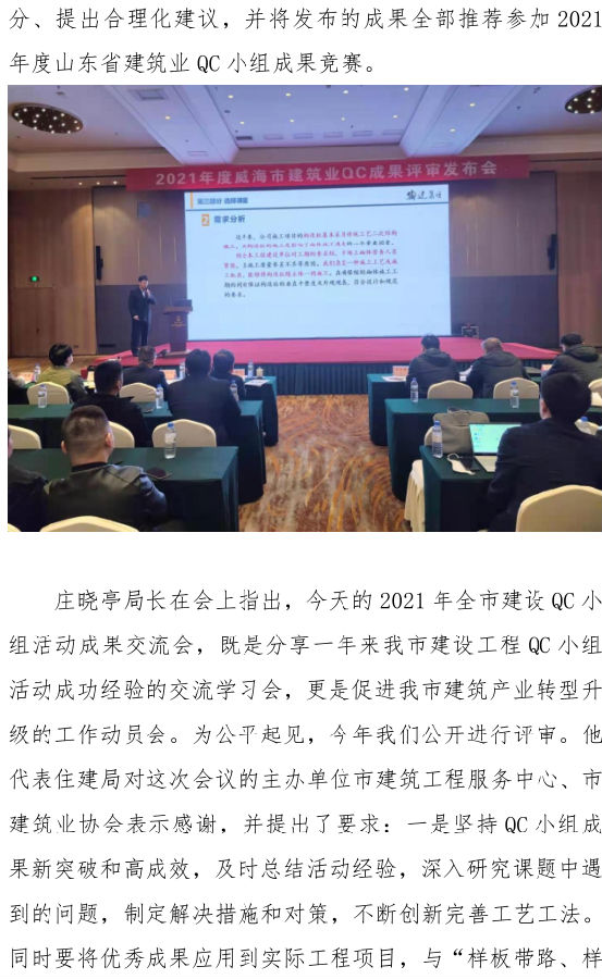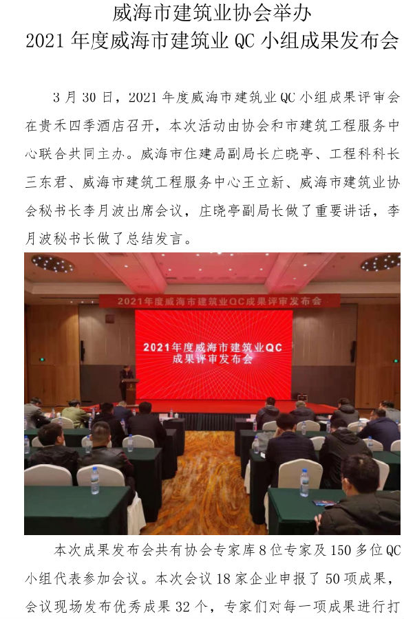 >威海市建筑業(yè)協(xié)會(huì)舉辦 2021年度威海市建筑業(yè)QC小組成果發(fā)布會(huì)