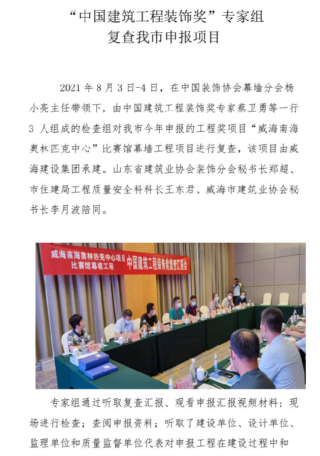 “中國建筑工程裝飾獎”專家組復(fù)查我市申報(bào)項(xiàng)目