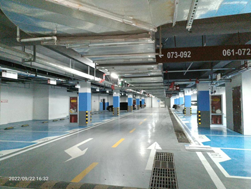 3.5、生產廠房地面及地下車庫混凝土地面大面積施工,施工精細,分隔縫通順,細部處理良好,大型機械設備進場使用至今無開裂鼓凸等問題。