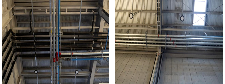 (1)PPR給水管道、熱鍍鋅消防管道、硬聚氯乙烯排水管道管道坡度合理、安裝牢固,經(jīng)通水、通球試驗檢測合格,無滲漏、堵塞情況。采暖、通風管道連接平直,圓弧均勻。電纜橋架及管線安裝橫平豎直、排列有序。