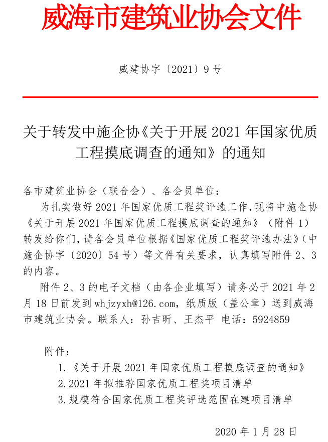 關(guān)于轉(zhuǎn)發(fā)中施企協(xié)《關(guān)于開展2021年國家優(yōu)質(zhì)工程摸底調(diào)查的通知》的通知