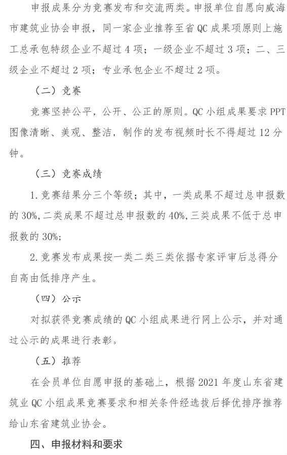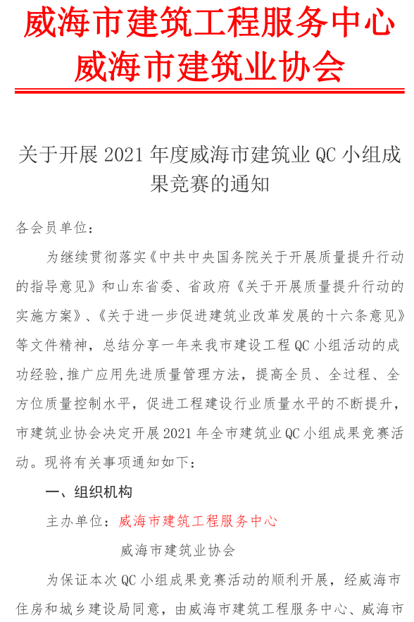 >關(guān)于開(kāi)展2021年度威海市建筑業(yè)QC小組成果競(jìng)賽的通知