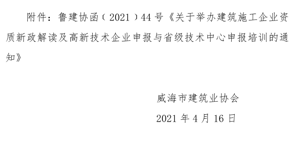 關(guān)于轉(zhuǎn)發(fā)山東省建筑業(yè)協(xié)會《關(guān)于舉辦建筑施工企業(yè)資質(zhì)新政解讀及高新技術(shù)企業(yè)申報與省級技術(shù)中心申報培訓(xùn)的通知》的通知
