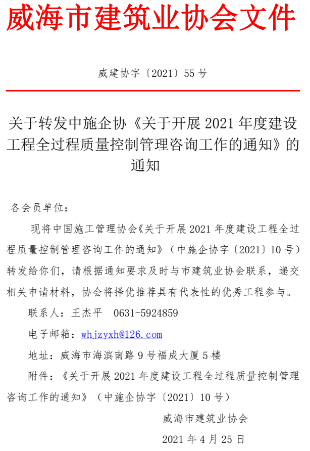 >關(guān)于轉(zhuǎn)發(fā)中施企協(xié)《關(guān)于開展2021年度建設(shè)工程全過(guò)程質(zhì)量控制管理咨詢工作的通知》的通知?
