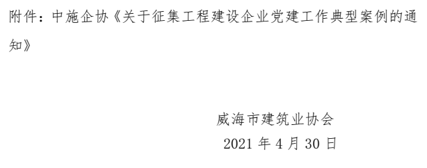 >關(guān)于轉(zhuǎn)發(fā)中施企協(xié)《關(guān)于征集工程建設(shè)企業(yè) 黨建工作典型案例的通知》的通知