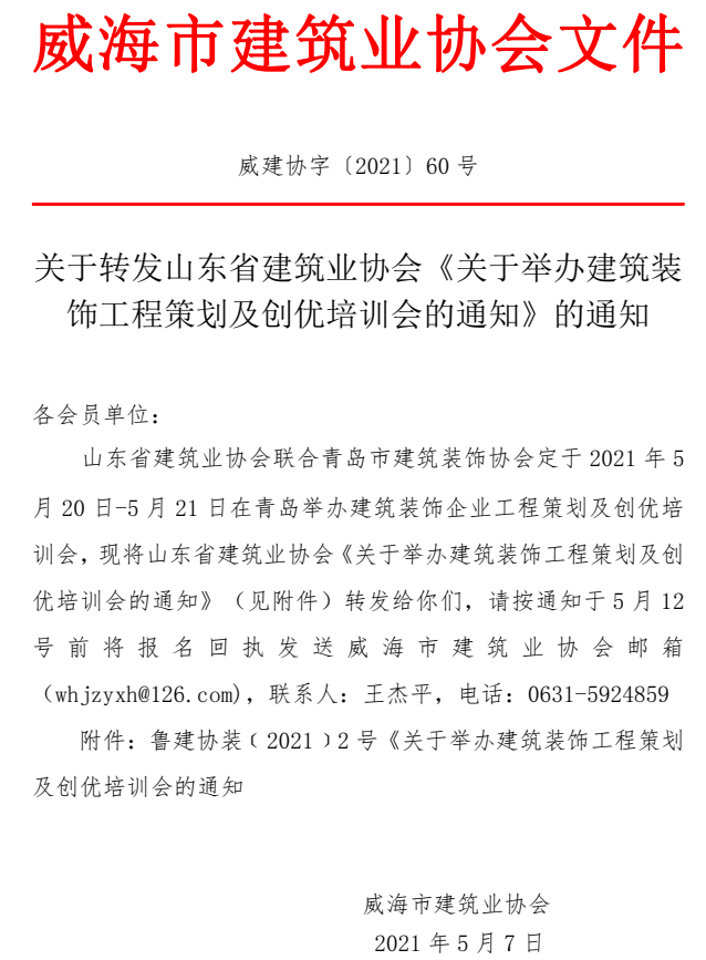 - 當(dāng)前位置:首頁(yè) >文件公告>關(guān)于轉(zhuǎn)發(fā)山東省建筑業(yè)協(xié)會(huì)《關(guān)于舉辦建筑裝飾工程策劃及創(chuàng)優(yōu)培訓(xùn)會(huì)的通知》的通知
