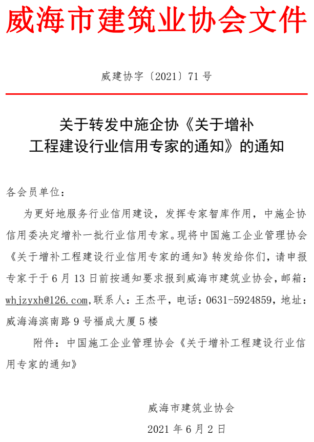 關(guān)于轉(zhuǎn)發(fā)中施企協(xié)《關(guān)于增補(bǔ) 工程建設(shè)行業(yè)信用專家的通知》的通知