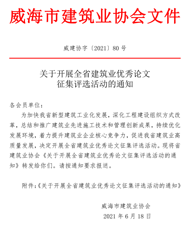 >關(guān)于開(kāi)展全省建筑業(yè)優(yōu)秀論文 征集評(píng)選活動(dòng)的通知