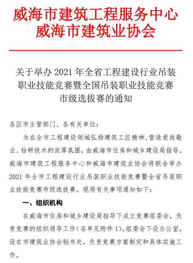 關于舉辦2021年全省工程建設行業(yè)吊裝 職業(yè)技能競賽暨全國吊裝職業(yè)技能競賽市級選拔賽的通知