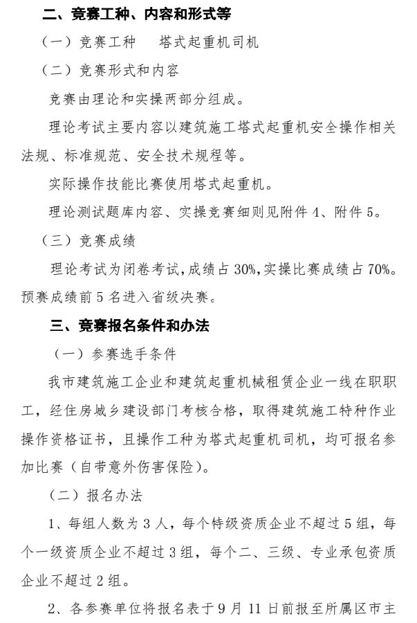 >關于舉辦2021年全省工程建設行業(yè)吊裝 職業(yè)技能競賽暨全國吊裝職業(yè)技能競賽市級選拔賽的通知