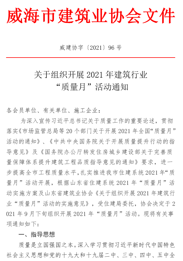 >關(guān)于組織開展2021年建筑行業(yè) “質(zhì)量月”活動(dòng)通知