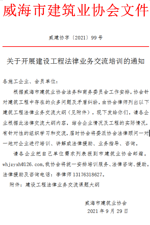 >關(guān)于開(kāi)展建設(shè)工程法律業(yè)務(wù)交流培訓(xùn)的通知