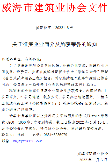 關(guān)于征集企業(yè)簡(jiǎn)介及所獲榮譽(yù)的通知