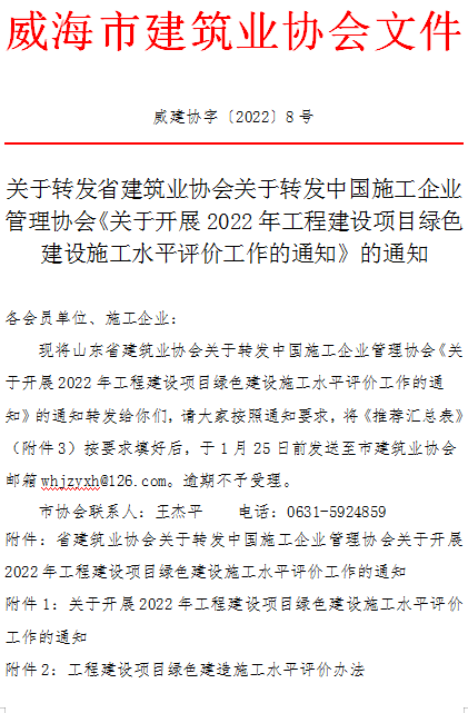 關(guān)于轉(zhuǎn)發(fā)省建筑業(yè)協(xié)會關(guān)于轉(zhuǎn)發(fā)中國施工企業(yè)管理協(xié)會《關(guān)于開展2022年工程建設(shè)項目綠色建設(shè)施工水平評價工作的通知》的通知