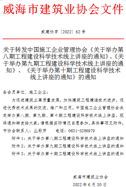 關(guān)于轉(zhuǎn)發(fā)中國施工企業(yè)管理協(xié)會(huì)《關(guān)于舉辦第八期工程建設(shè)科學(xué)技術(shù)線上講座的通知》、《關(guān)于舉辦第九期工程建設(shè)科學(xué)技術(shù)線上講座的通知》、《關(guān)于舉辦第十期工程建設(shè)科學(xué)技術(shù)線上講座的通知》的通知