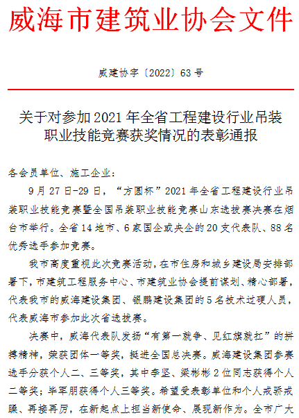 >關(guān)于對(duì)參加2021年全省工程建設(shè)行業(yè)吊裝職業(yè)技能競(jìng)賽獲獎(jiǎng)情況的表彰通報(bào)
