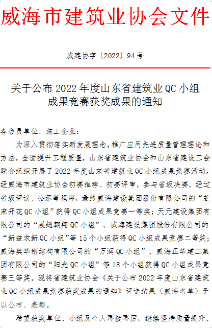 附件2:2022年度山東省建筑業(yè)QC小組成果競賽獲獎(jiǎng)名單(威海).zip