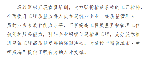 威海市工程質(zhì)量監(jiān)督管理專題培訓(xùn)會(huì) 順 利 召 開