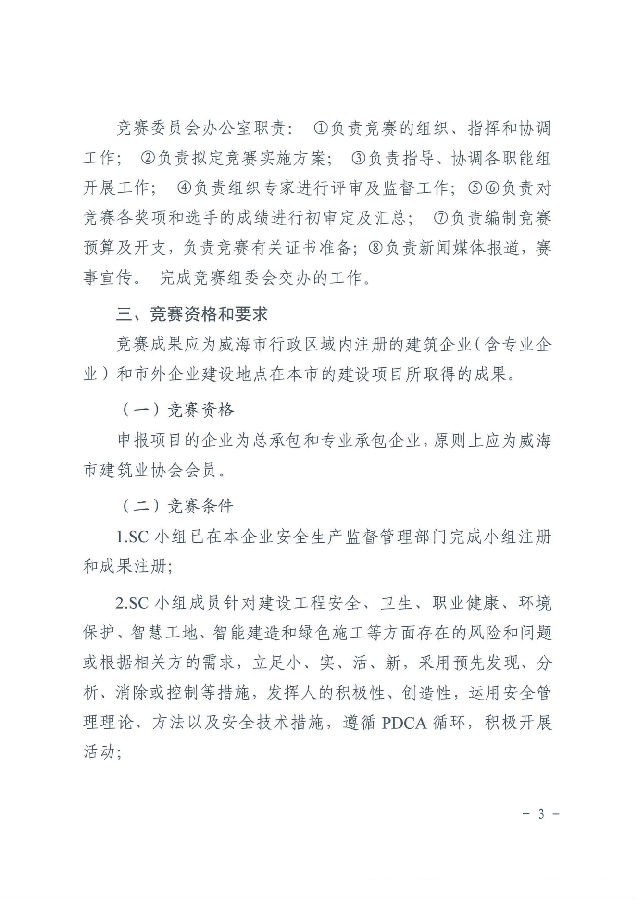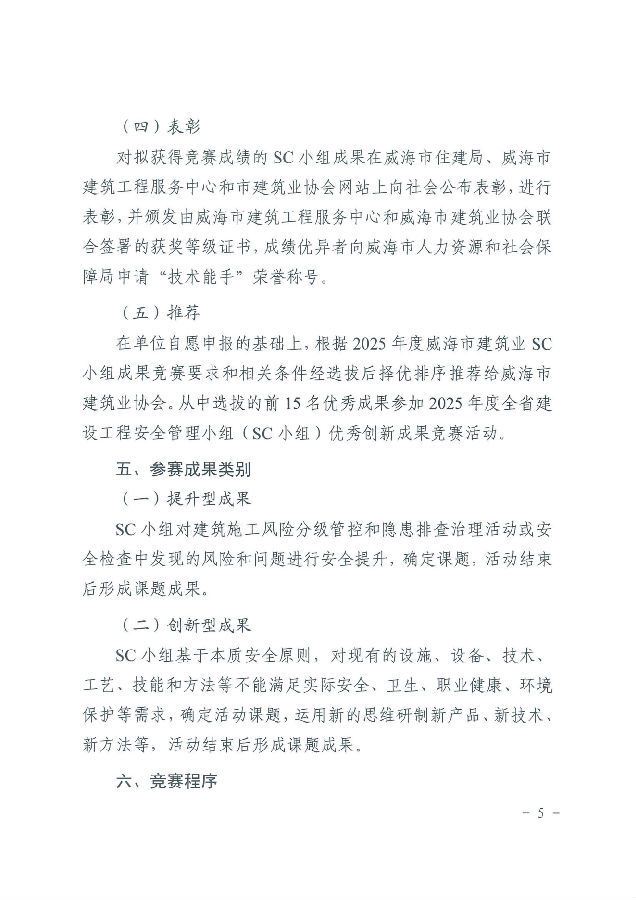 關(guān)于開(kāi)展2025年度威海市“技能興威”職業(yè)技能競(jìng)賽—威海市建筑業(yè)建設(shè)工程安全管理小組(SC小組)活動(dòng)成果競(jìng)賽的通知
