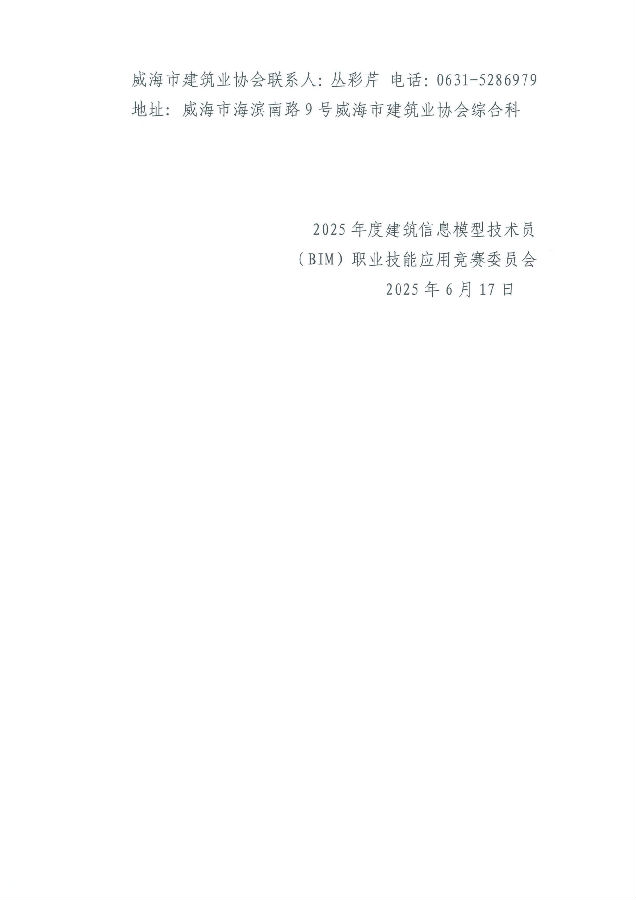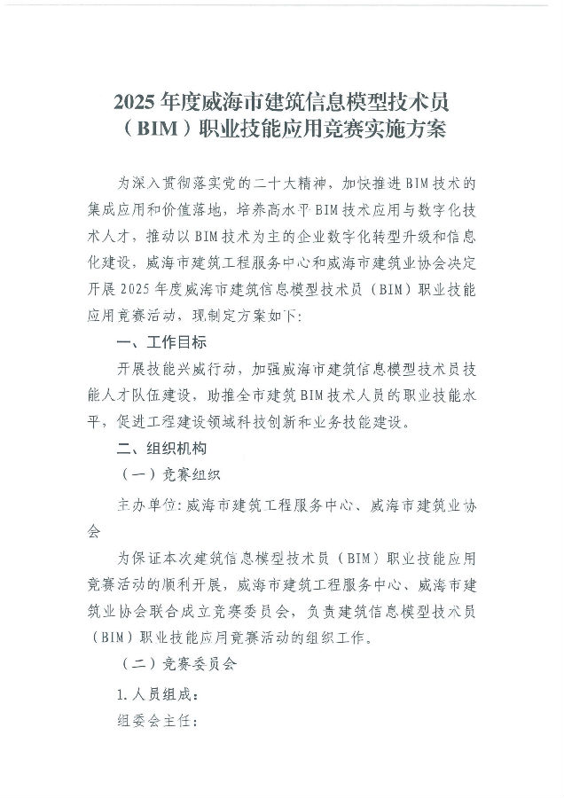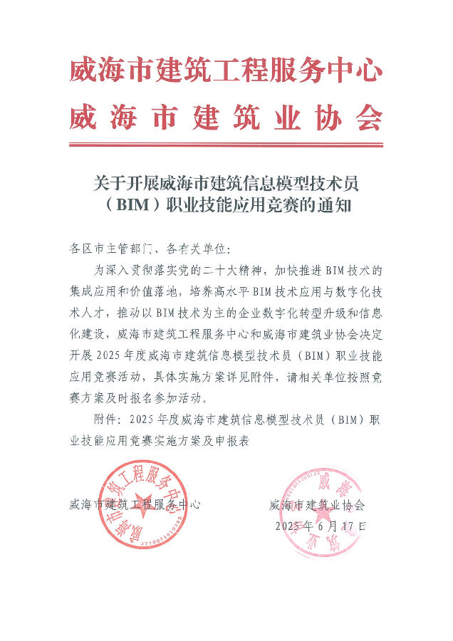 >關(guān)于開展威海市建筑信息模型技術(shù)員(BIM)職業(yè)技能應用競賽的通知