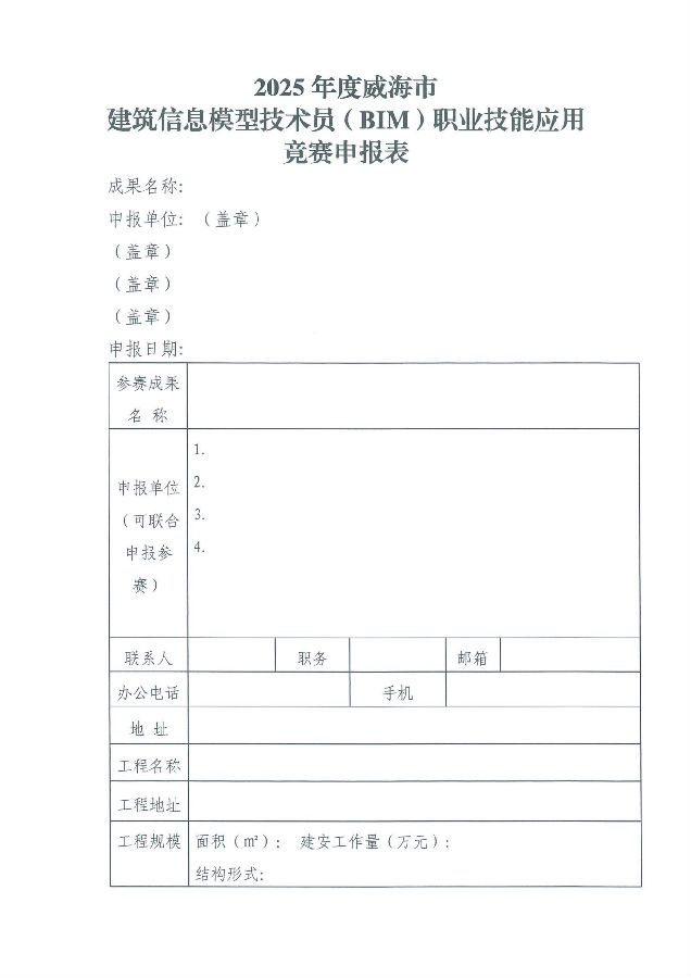 2025年度威海市建筑信息模型技術(shù)員(BIM)職業(yè)技能應用競賽申報表.docx