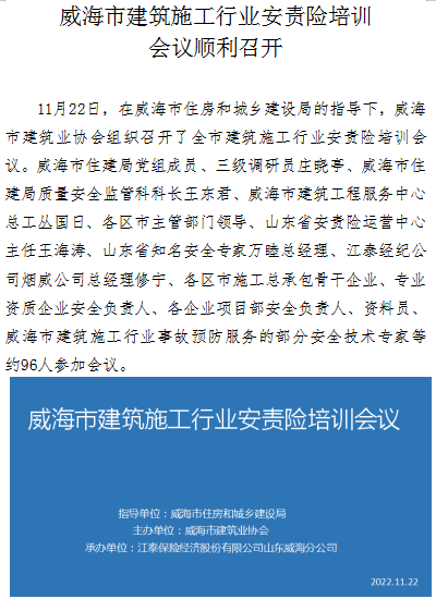 威海市建筑施工行業(yè)安責(zé)險(xiǎn)培訓(xùn)會(huì)議順利召開