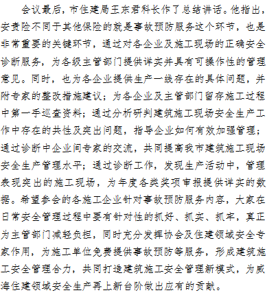 >威海市建筑施工行業(yè)安責(zé)險(xiǎn)培訓(xùn)會(huì)議順利召開